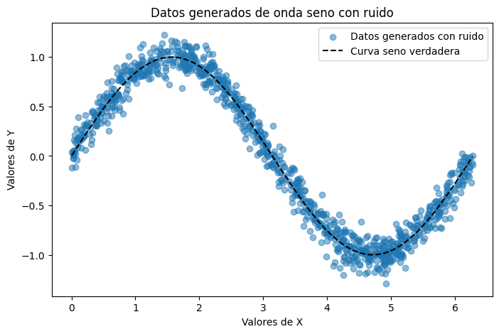 valores_y = np.sin(valores_x) + np.random.normal(0, desviacion_ruido, num_puntos)